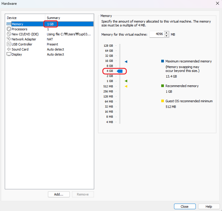 이름을 CentOS로 지정해주고 메모리를 1GB에서 4GB로 변경해주었다. Finish 누르고 CentOS 설치.